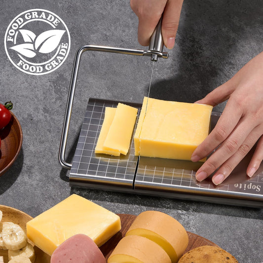 Sopito Cheese Slicer, Stainless Steel Adjustable Thickness Block Cheese Cutter Slicer Board with 16 Replacement Wires