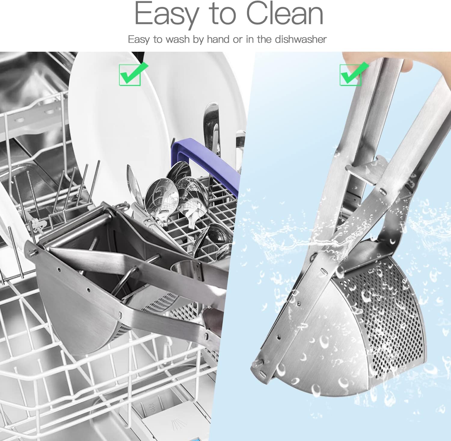 - Premium Stainless Steel Potato Ricer & Masher:Crafted with heavy-duty, food-grade stainless steel that resists stains, corrosion and bending. This professional-grade ricer maintains its shape through years of use, making it perfect for daily meal prep and holiday cooking. The non-reactive material keeps food tasting pure